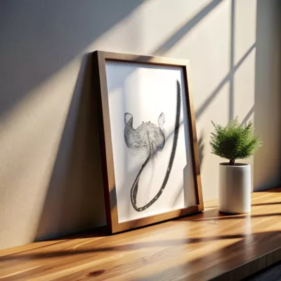 Le style pointilliste apporte une finesse et une modernité au dessin, tout en accentuant l’aspect onirique de l’image. Le contraste entre la puissance tranquille de la baleine et la robustesse intemporelle des tours souligne une connexion profonde entre la nature et la culture.